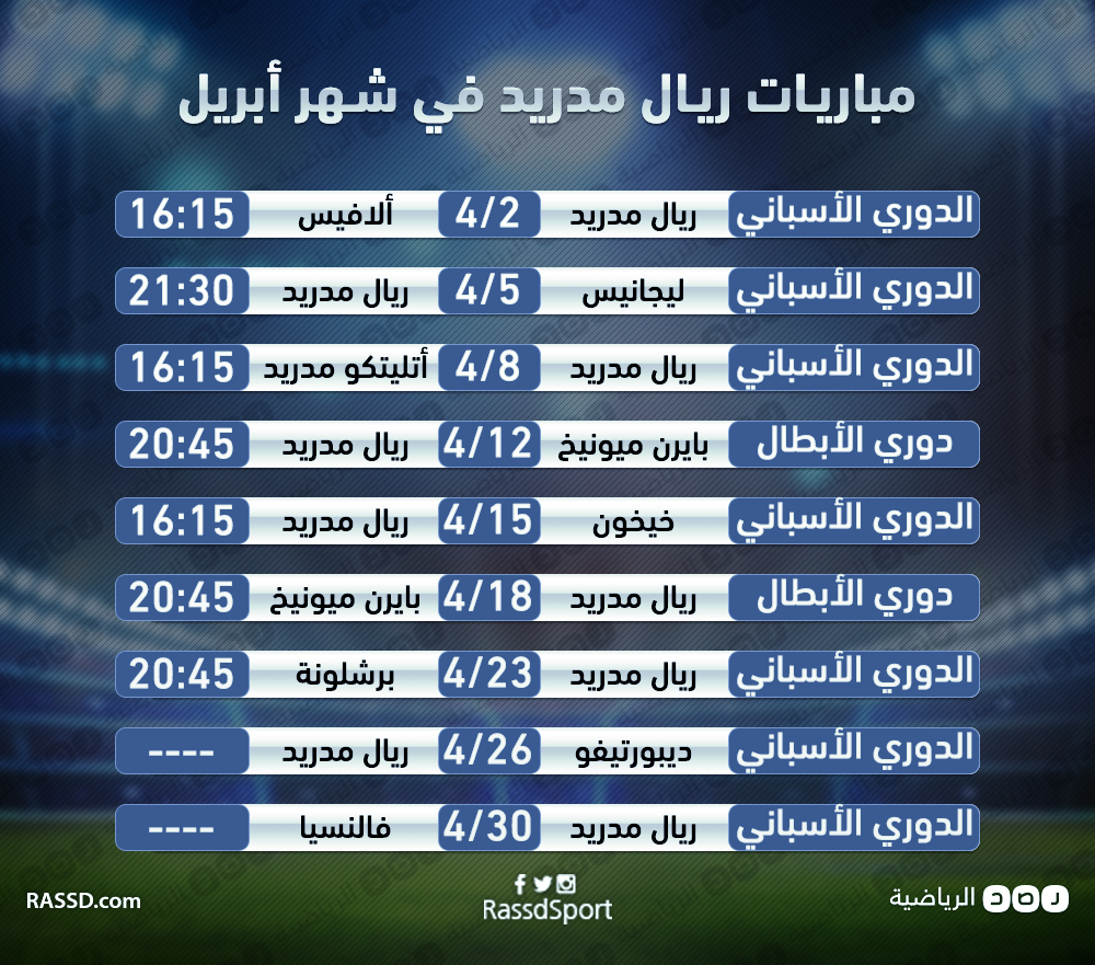ونستعرض لكم في الصورتين التاليتين مباريات الفريقين خلال شهر أبريل: