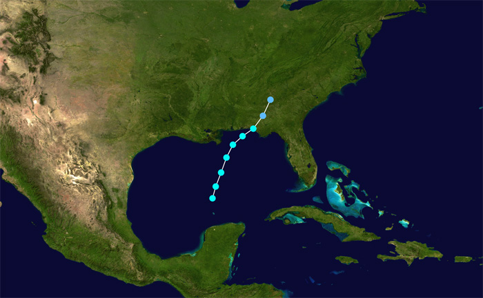 الإعصار دبيي، 1965، بدأ في 24 سبتمبر إلى 30 سبتمبر، في موبايل، ألاباما، وقدرت خسائره بـ 25 مليون دولار .