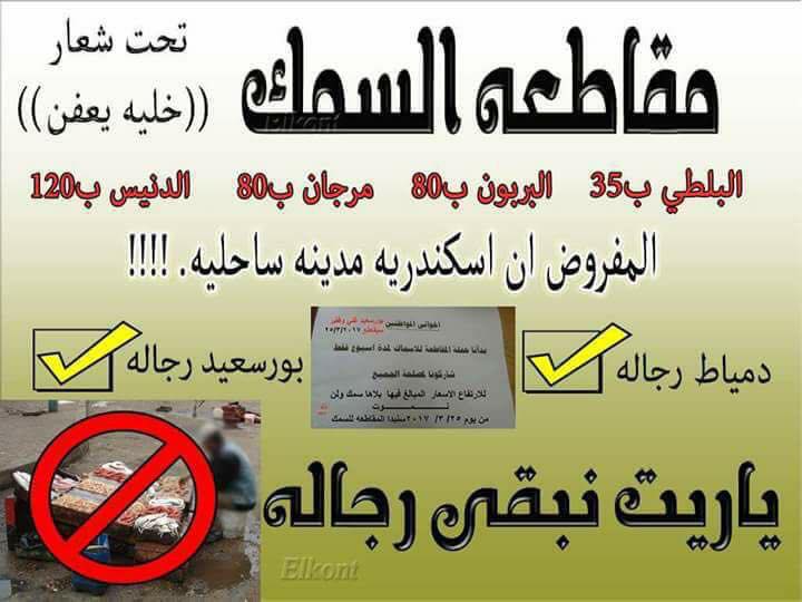 وأشار الأهالي أنهم لجؤوا إلى الأسماك، بعد الارتفاع الجنوني الذي طال مختلف السلع الغذائية والخضروات والدواجن، وطالبوا جميع المواطنين بمقاطعة شراء الأسماك تحت شعار “خليها تعفن” لمدة أسبوع علي الأقل.