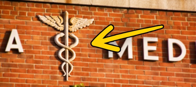 يرجع الرمز إلى عصر الإغريق الذين كانوا يعتقدون في السحر للشفاء من الامراض، وكان أشهر من مارس تلك الطقوس هو الحكيم الإغريقي ”إسكيلابيوس” حيث زعم أنه يعالج المرضى بلمسة واحدة من عصاه أو من لسان حيته التي كانت مرافقة له دوما.