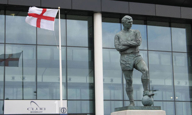 أنشاء تمثال اللاعب بوبي مور أمام أمام ملعب ويمبلي. وهو لاعب كرة قدم إنجليزي سابق، من مواليد إسكس أبريل 1941