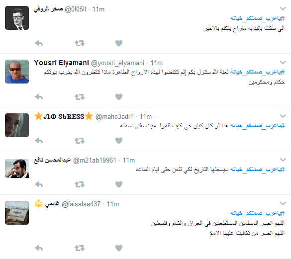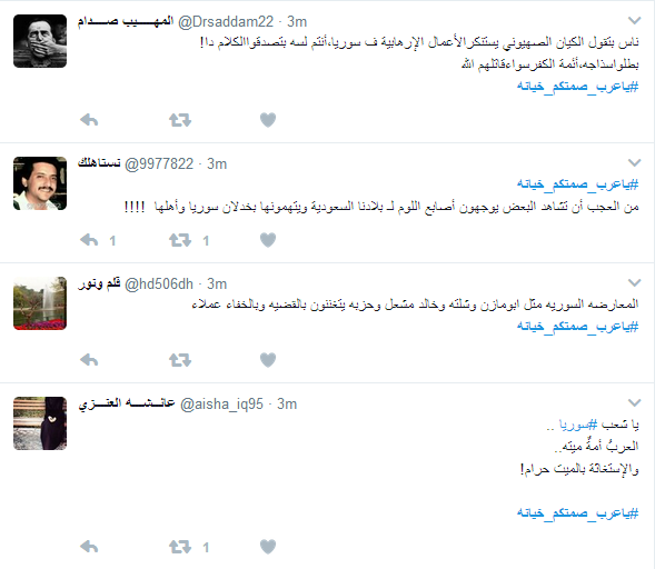 والعرب ….صم بكم عمي ؟! pic.twitter.com/pVCvaDfTCS— Rasha Nasr (@rasha1nasrallah) April 5, 2017