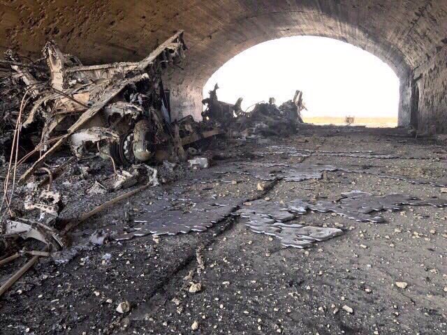 تداول رواد مواقع التواصل الاجتماعي مقاطع فيديو وعدد من الصور لمطار الشعيرات صباح اليوم الجمعة، عقِب الضربات الأميركية للمطار العسكري فجر اليوم.