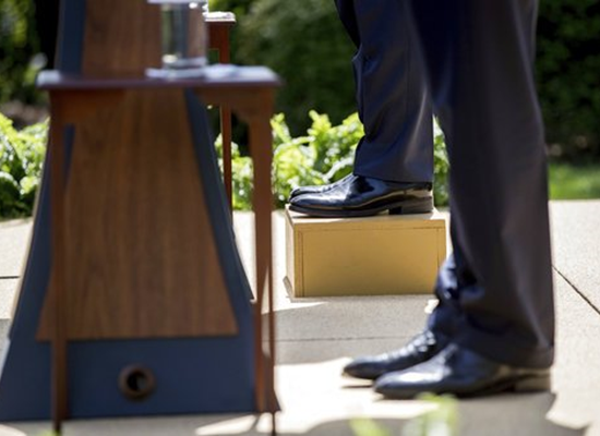 ولقطت عدسات الكاميرات العالمية، السر الذي جعل طول قامة العاهل الأردني أطول قليلا من الرئيس الأميركي، حيث تم وضع صندوق خشبي أسفله لكي يرتقي فوقه خلال المؤتمر.