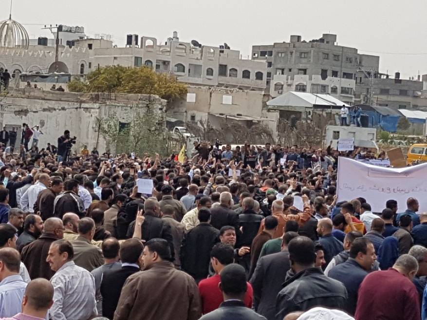 وتجمع المتظاهرون وسط مدينة غزة في تمام الساعة الحادية عشر، وأطلقوا هتافات منددة بقرار الحكومة، وطالبوا برحيل رئيس الوزراء الحمد الله ووزير المالية بشارة.