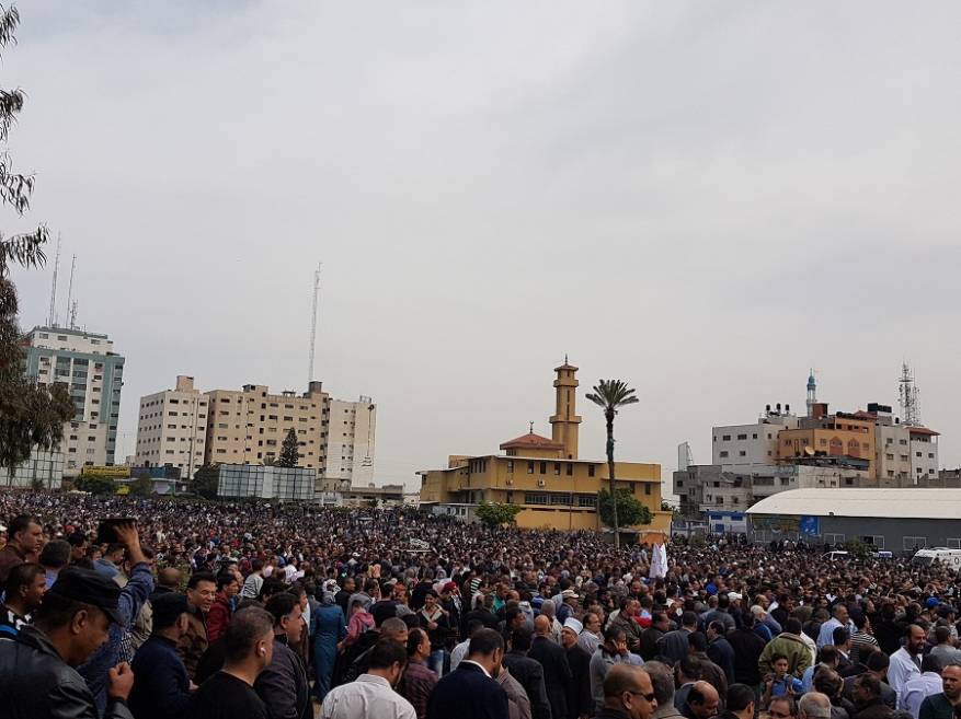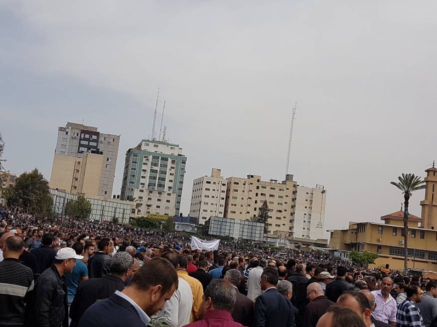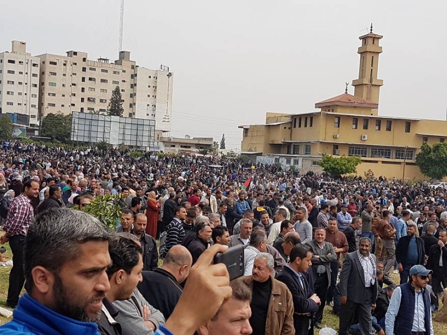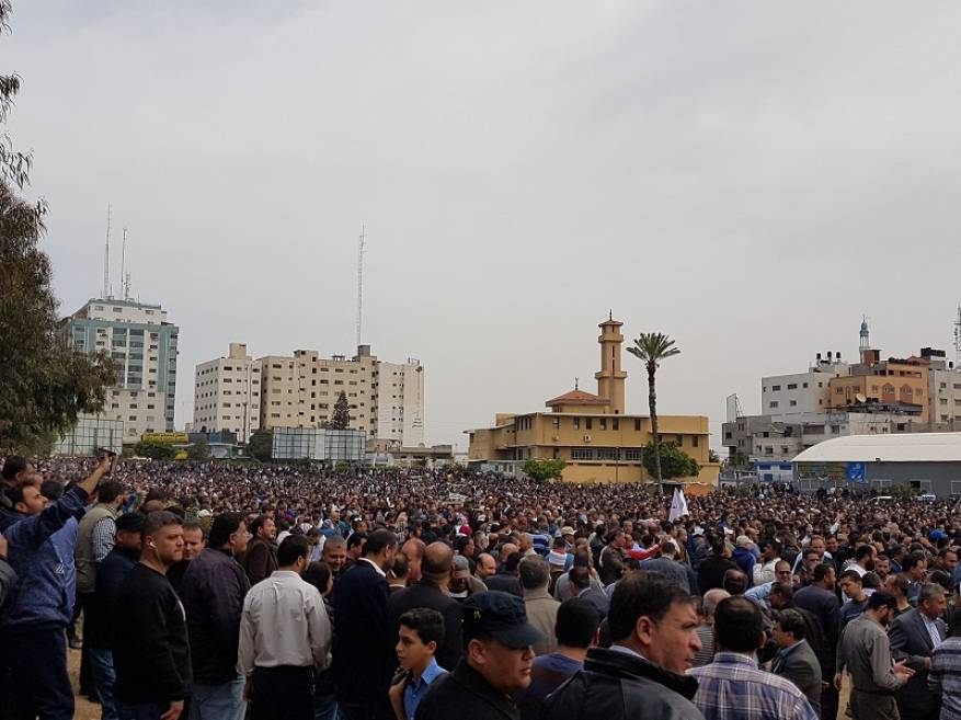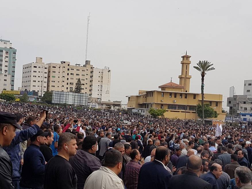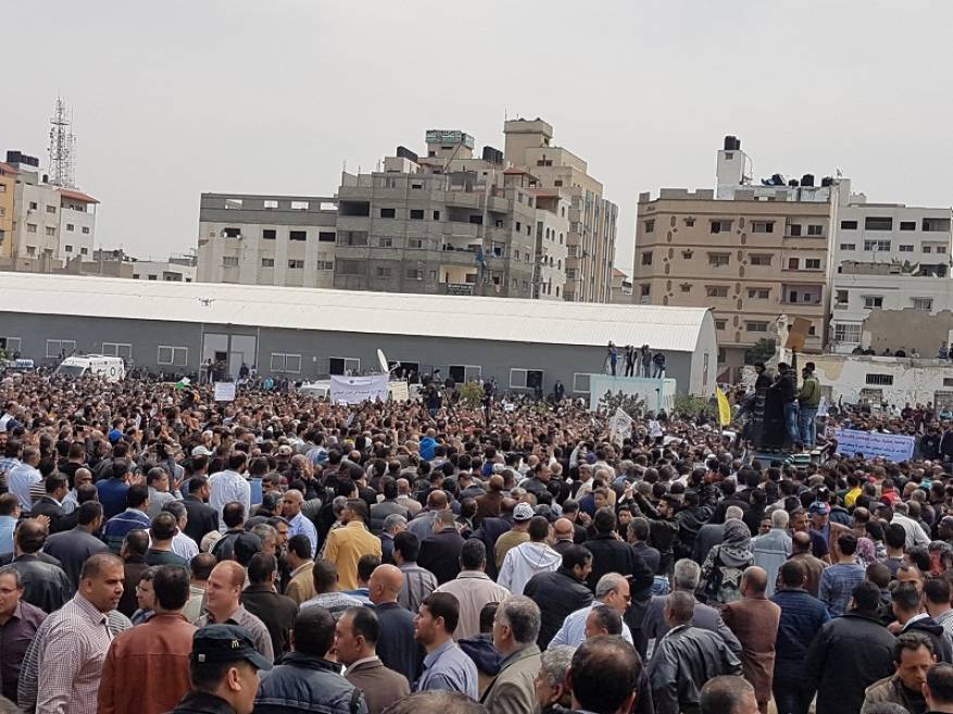شارك عشرات الآلاف من المواطنين في قطاع غزة، في تظاهرة، بساحة السراية، اليوم السبت، احتجاجا على قرار الحكومة الفلسطينية بخصم 30% من رواتبهم.