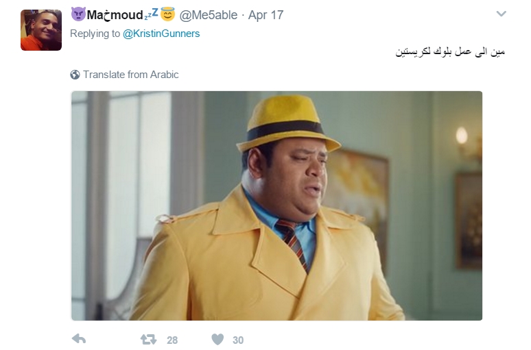 وقالت كريستين في تغريدة لها، معلقة على الحظر ” بعد كل ما فعلته لهذا الرجل، قام بحظري، تعلمون جميعا لماذا؟ لأنني أحببته كثيرًا ولكني أسفه أني حبيتك”.