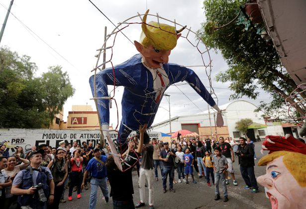 واجتمع السكان المكسيكيون أمس في احتفالية ضخمة، وقاموا بحرق تمثال يمثل الر ئي الأميركي دونالد ترامب، معتقدين انه رمزا للشر.