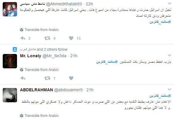 وتصدّر هاشتاج “سانت كاترين” قائمة الأعلى تدولًا بموقع التدوين العالمي “تويتر” لعدة ساعات.