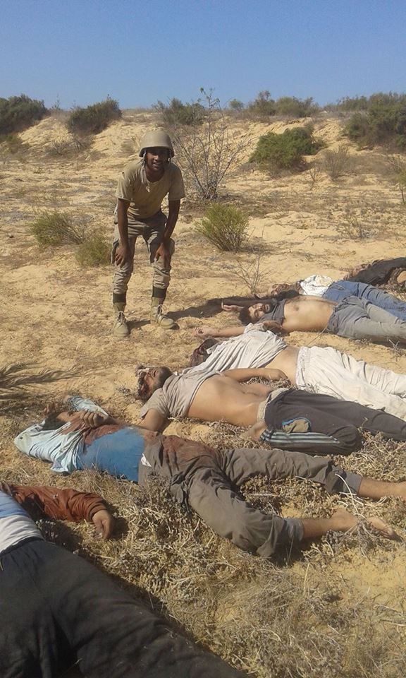 وبحسب الصور التي نشرها جندي يخدم في سيناء عبر صفحته على فيس بوك، فإن هناك ثماني جثث لقتلى تراوحت أعمارهم بين 20 عامًا و30 وأصيبوا برصاص في الرأس.