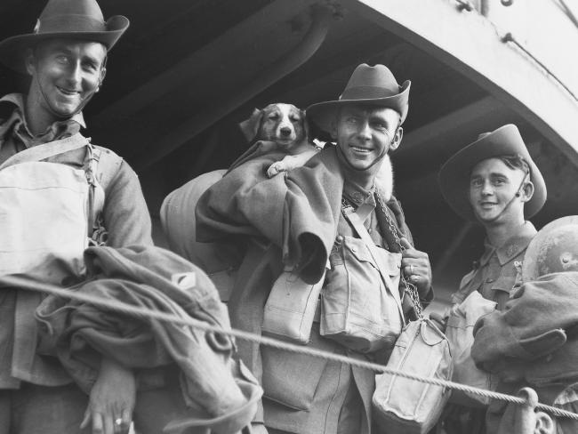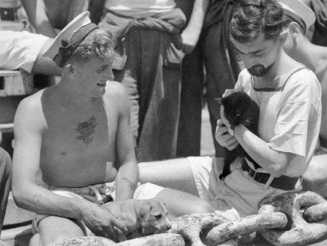 التقطت هذه الصورة لأعضاء من الجيش الأسترالي مع كلب كحيوان أليف على ظهر سفينة كينجستون بعد إجلاء مدينة طبرق، والتقطت في أكتوبر 1941.