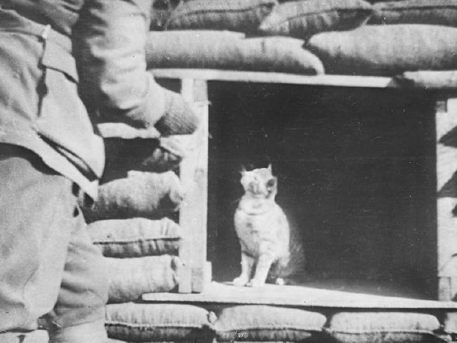 تظهر هذه الصورة قطة جالسة في خندق رملي، وتنظر إلى جندي غير معروف، وربما كانت هي الأخرى تميمة حظ للجنود، والتقطت هذه الصورة في تركيا.