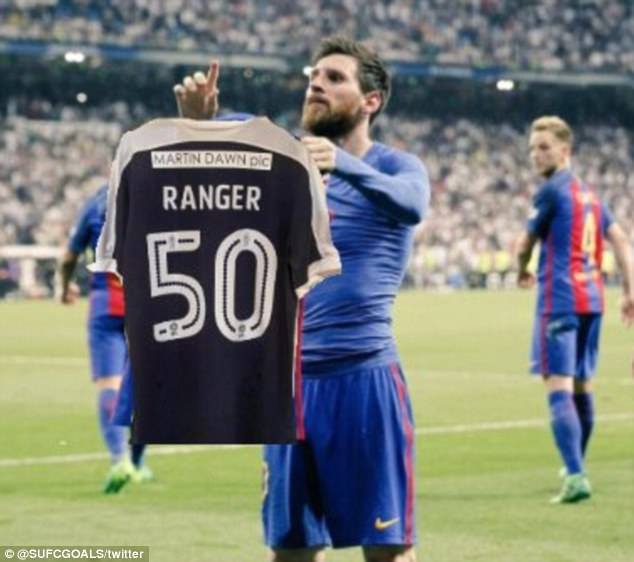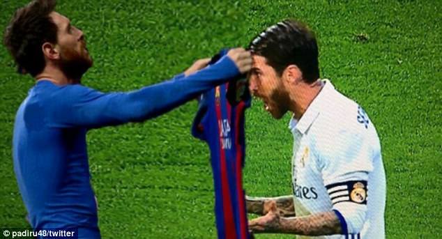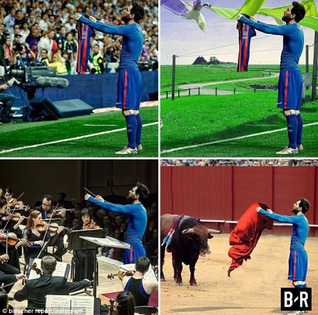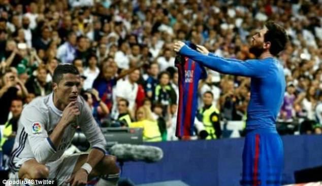 واحتفل ميسي بهدفه الثالث الذي أحرزه في الدقائق الأخيرة من المباراة، بعدما ساد التعادل بين الفريقين 2-2، رافعًا قميصه في وجه الجماهير.