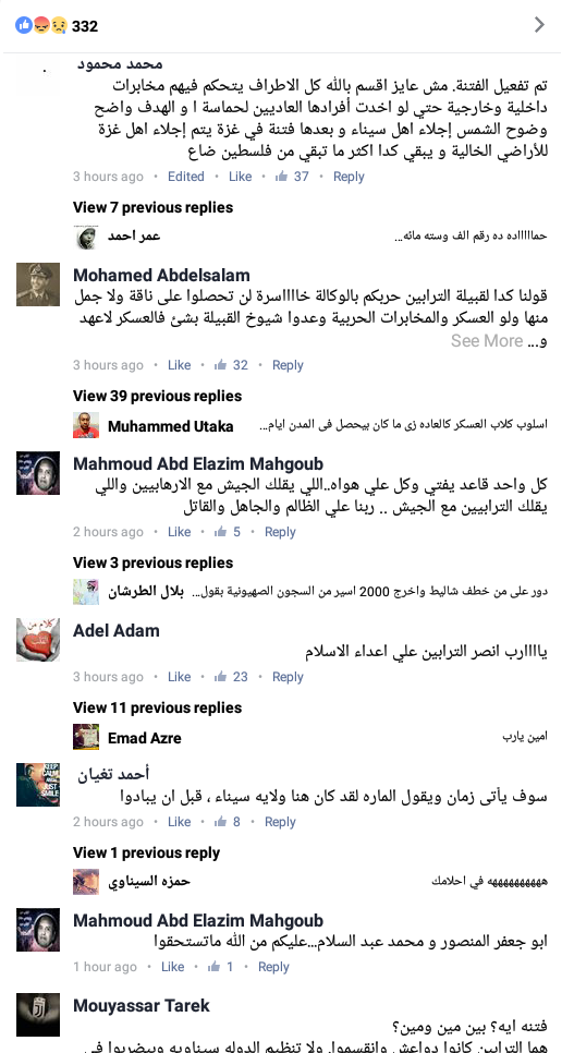 وكانت قبائل سيناء قد توعدت بملاحقة وقتل عناصر تنظيم الدولة وذلك حتى تطهير سيناء منهم.
