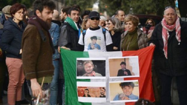 وفي الأثناء، بادرت السلطات الإيطالية بمطالبة الحكومة المصرية بتحقيق العدالة؛ وذلك في محاولة منها لتهدئة الاحتجاجات الشعبية. ففي تلك الفترة، اجتاحت الملصقات شوارع إيطاليا، وقد تضمنت شعارات تُذكّر الحكومة بالقضية وتطالبها بالتحقيق في حيثياتها.