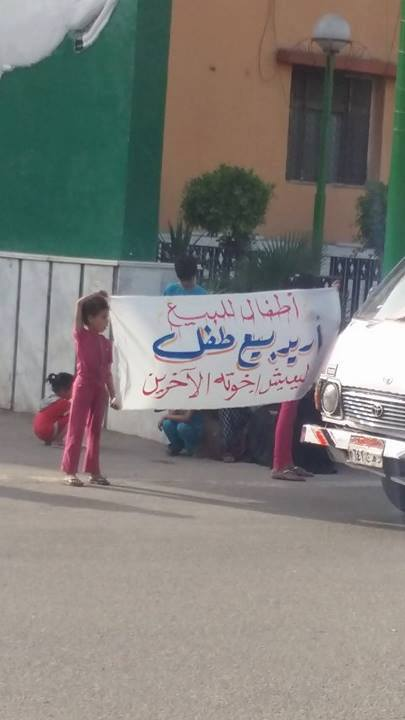 في مشهد مأساوي أمام مبنى محافظة الشرقية بمدينة الزقازيق، شوهدت سيدة مصطحبة أطفالها وجالسة بجوار لافتة مكتوب عليها “أطفال للبيع.. أريد بيع طفل ليعيش إخوته الآخرون”.