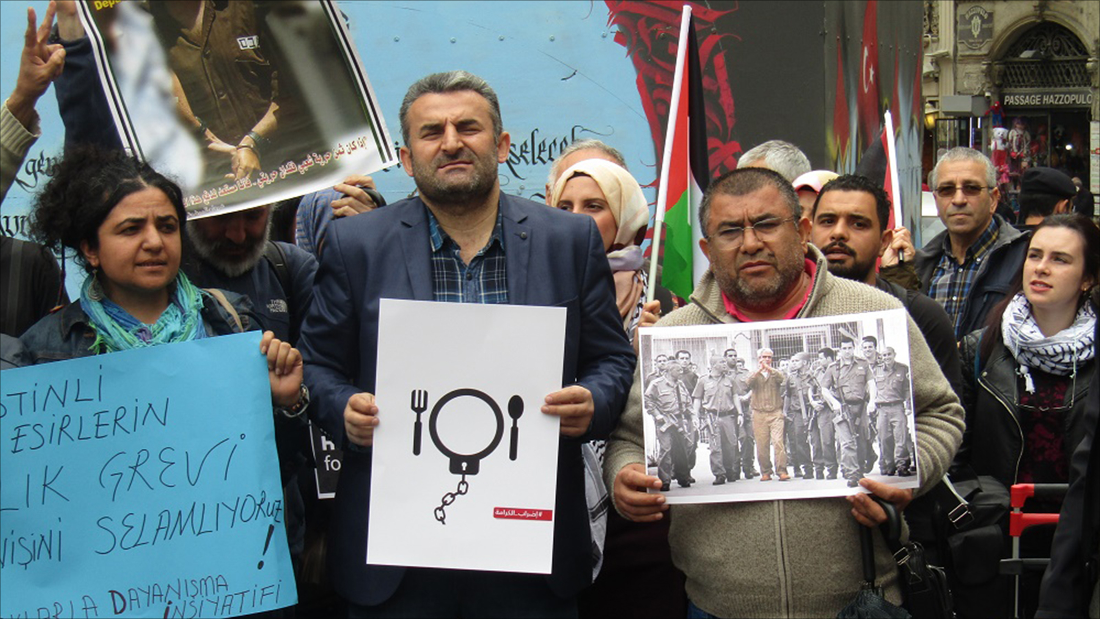 ونظمت شبكة “صامدون” للدفاع عن الأسرى الفلسطينيين وفرع حركة المقاطعة العالمية في تركيا وقفة تضامن بإسطنبول، رفعوا فيها صور قادة الأسرى المضربين والأعلام الفلسطينية ولافتات تدعو للاستجابة لمطالبهم.