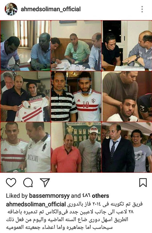 من جانبه انتقد أحمد سليمان عضو مجلس إدارة نادي الزمالك السابق، الإدارة الحالية لنادي الزمالك، واتهمها أنها السبب في فقدان الدوري لهذا العام، وقال عبر حسابه على موقع انستجرام : “فريق تم تكوينه فى ٢٠١٤ فاز بالدورى والكاس تم تدميره بإضافة ٢٨ لاعب الى جانب لاعبين جدد فى الطريق اسهل دورى ضاع السنة الماضية واليوم من فعل ذلك سيحاسب أمام جماهيره وأمام اعضاء جمعيته العمومية”.