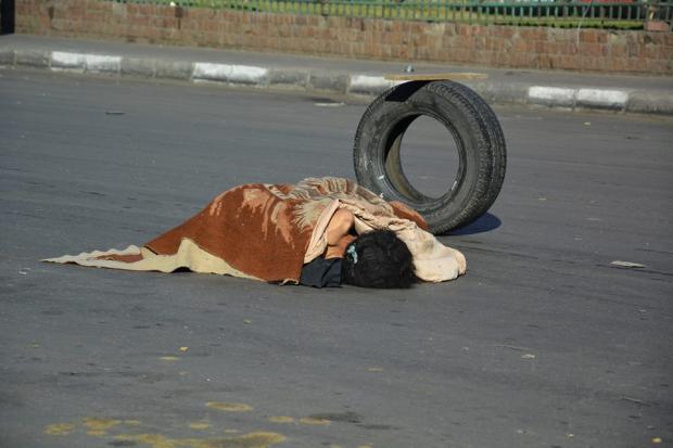 وأضاف: “الناس اللي ماشية سترتها بالبطانية دي، وركنتها ع جنب الطريق.. بس هى كانت بتصرخ وتقول سقعانه وزحفت تاني في الشمس في وسط الشارع”.