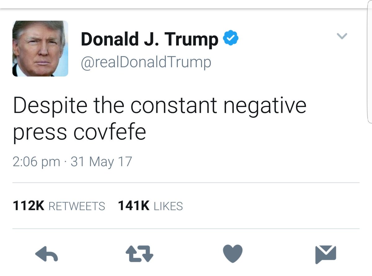 وكان الرئيس الاميركي قد نشر على صفحته الرسمية على موقع “تويتر”، تدوينة تحتوي على كلمة غامضة باسم “сovfefe”، لا يوجد لها أساس في اللغة الإنجليزية، وسعى متابعيه لمعرفة المقصود منها وسط الكثير من السخرية والتخمينات لمعنى الكلمة.