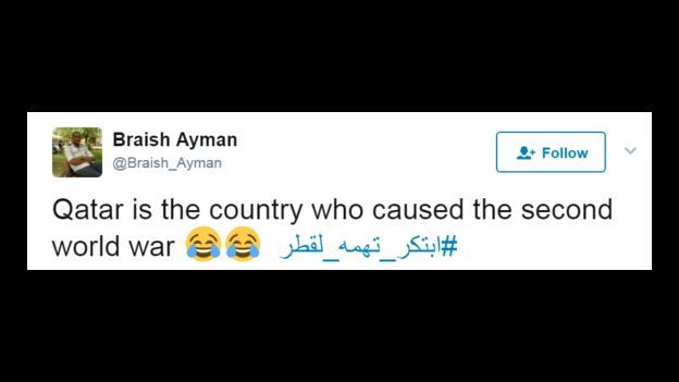 وكتب مُغرِّد ساخرًا: “قطر هي المسؤولة عن اختراع فيروس الزومبي، وستكون المسؤولة عن يوم القيامة”، بينما كتب آخر أن “قطر هي المسؤولة عن قيام الحرب العالمية الثانية”.