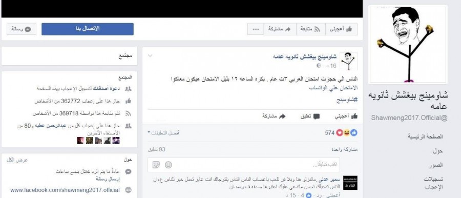 بعد أن صرّح وزير التربية والتعليم المصري قائلًا: “مش خايفين من شاومينج”، خرجت اليوم صفحة “شاومينج بيغشش ثانوية عامة” على متابعيها بإعلان نيتها تسريب امتحان اللغة العربية للثانوية العامة؛ وجاء في إعلانها: “الناس اللي حجزت امتحان العربي 3 ث، بكرة الساعة 12 بليل الامتحان هيكون معاكوا، الامتحان على الواتساب”.