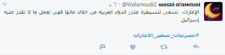 استقبل مرتادو مواقع التواصل الاجتماعي اختراق البريد الإلكتروني لسفير دولة الإمارات العربية المتحدة بواشنطن “يوسف العتيبة” بهاشتاجات؛ منها “#تسريبات_العتيبه” و”#تسريبات_سفير_الإمارات”، وأعرب فريق منهم عن سعادتهم بالتسريب لكشفه نوايا أبو ظبي، التي وصفوها بـ”الخبيثة”، ورؤوا أن سياسة الإمارات تُشكّل جرائم حروب وجرائم ضد الإنسانية.