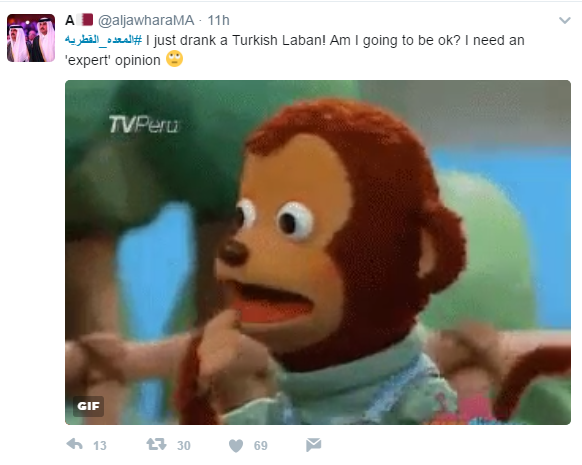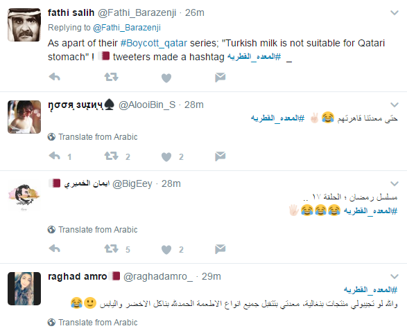 وأطلق مغردون وسم “خبير المعدة”، ولقى انتشارا واسعا بعد وقت قصير من تداوله، وكانت الأسواق القطرية قد شهدت انتشارا كثيفا لمختلف المنتجات التركية والإيرانية، مابين ألبان وأجبان ودجاج وخضراوات وفواكه طازجة وغيرها الكثير.