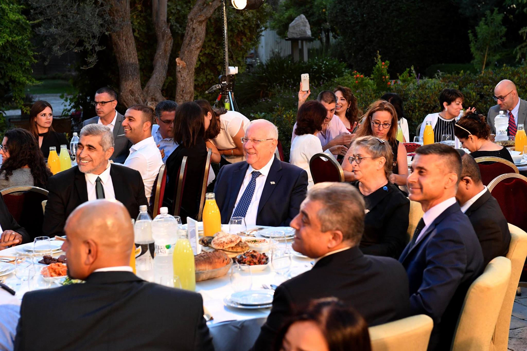 ووجه ريفلين التحية باللغة العربية إلى سفراء كل من الأردن ومصر وتركيا ، في الإفطار الذي أقامه في منزله بالقول: “إنه لشرف عظيم لي أن أستضيفكم هذا اليومَ في بيتِكم بيت رئيس الدولة”.