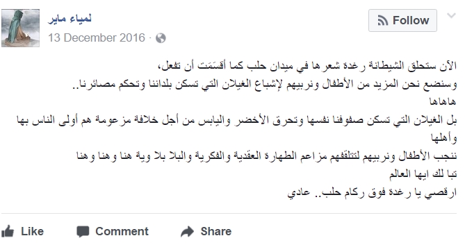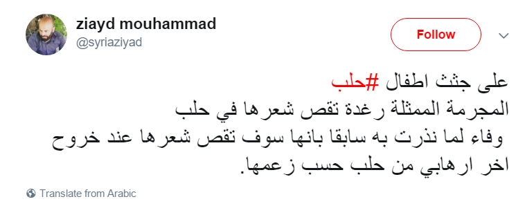وكانت رغدة قد قطعت عهدا، منذ عام، بانها ستقص شعرها وتنثره في ميدان الجابري بحلب، عند خروج المقاتلين المعارضين من مدينة حلب.