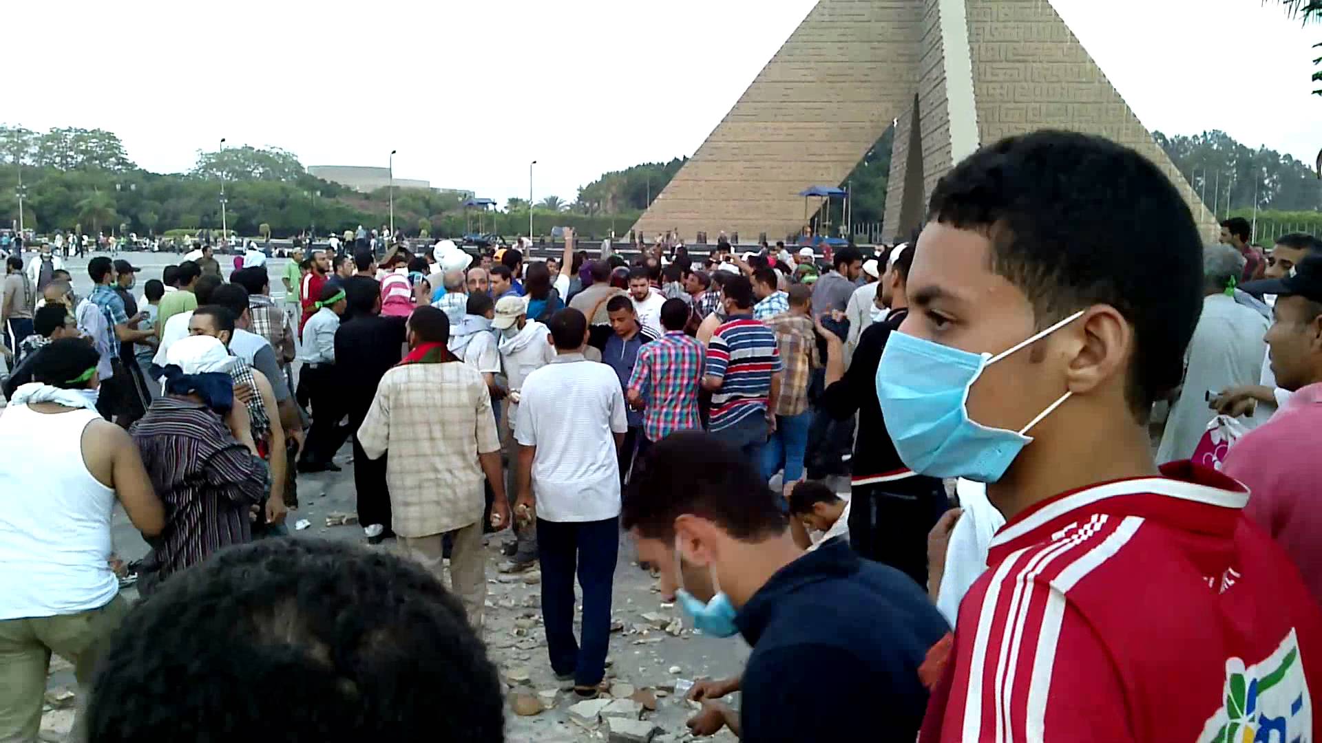 وقعت أول مجزرة أُطلق عليها «أحداث المنصة» أو «النصب التذكاري»، استخدمت خلالها قوات الشرطة، بمعاونة مجموعة من البلطجية الرصاصَ الحي والخرطوش وقنابل الغاز المسيلة للدموع وزجاجات المولوتوف، مستهدفةً المتظاهرين المعتصمين بميدان «رابعة العدوية» بمدينة نصر، من اتجاه شارع النصر، وراح ضحيتها أكثر من 200 قتيل وأكثر من 4500 مصاب.