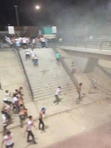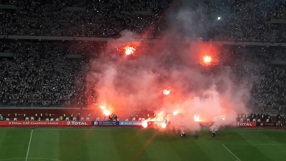 ومنذ إحراز الفريق الليبي هدفه الثاني، الذي تقدم به على الزمالك في الدقيقة 69، أشعلت جماهير الشماريخ وألقوا بها في الملعب، إضافة إلى الهتاف ضد اللاعبين وحطموا كراسي بمدرجات الدرجة الثالثة.