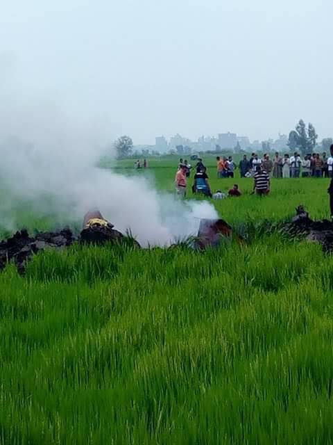 وتداول عدد من مستخدمي مواقع التواصل صورًا لموقع الحادث تظهر حريق بالطائرة مؤكدين مصرع قائدها.