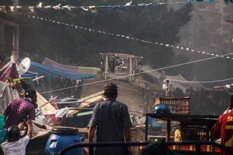 بعد الانقلاب العسكري في عام 2013، كنت معتاد الذهاب يوميًا إلى رابعة العدوية لتغطية اعتصامات الإخوان المسلمين الداعية إلى الدفاع عن شرعية الدكتور محمد مرسي؛ وبعدما رأيت فض الاعتصام أدركت أنها واحدة من أكثر الهجمات الشنيعة على حقوق الإنسان في التاريخ المصري. كان الجو حارًا جدًا في شهر رمضان. وأفطرت كثيرًا مع المعتصمين هناك، وقضيت ساعات طويلة في المركز الإعلامي بالقرب من مسجد رابعة، وانضم إليّ مصورون إيطاليون آخرون.