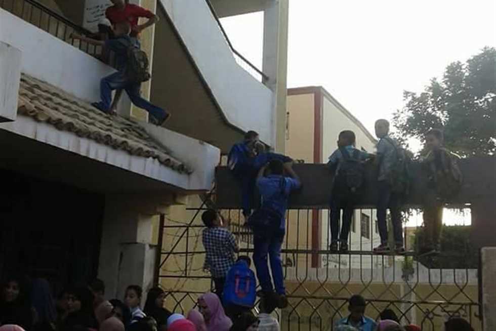 كما اصطف أولياء الأمور بأسيوط مع أبنائهم في الساعة السادسة والنص صباحا، وقاموا بمساعدتهم في دخول المدرسة متسلقين الأسوار الحديدية والحوائط للجلوس في الصفوف الأولى، وسط غياب أفراد الأمن والعمال.