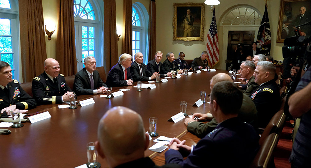 وقال بيان للبيت الأبيض، إن وزير الدفاع جيمس ماتيس ورئيس هيئة الأركان الأمريكية المشتركة الجنرال جوزيف دنفورد أطلعا ترامب على الخيارات خلال اجتماع مع أعضاء فريقه للأمن القومي.