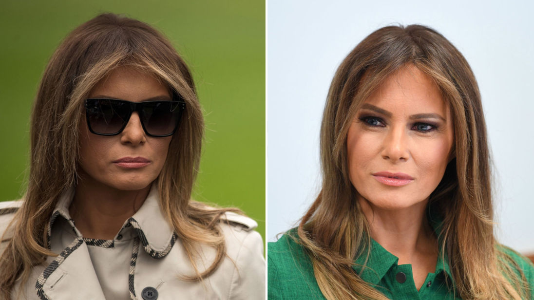 وتظهر في مقطع فيديو متداول ميلانيا وهي ترتدي نظارات سوداء كبرى، تخفي نصف وجهها؛ ما جعل كثيرين يتحدثون عن أن وجهها وشعرها يبدوان مختلفين، خاصة في ما يتعلق بحجم الأنف.