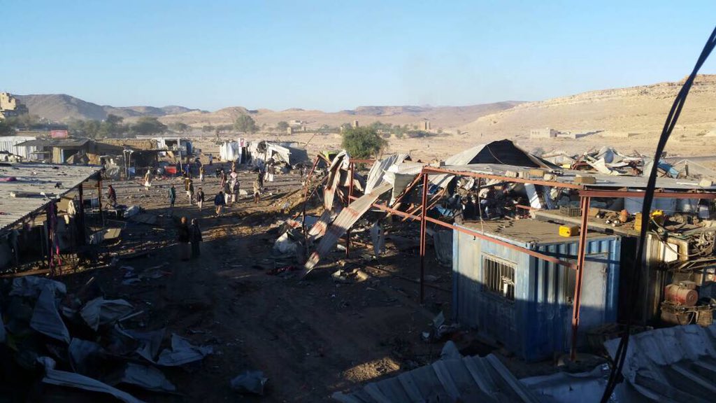 ارتفاع عدد شهداء سوق الليل في #صعده الى 29 شهيد من المدنيين الابرياء بعد قيام طيران التحالف قصف السوق الذي لايتواجد فيه اي هدف عسكري للحوثي pic.twitter.com/NHN9rPnRUz