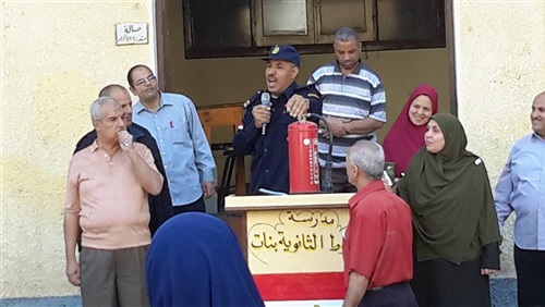 بمدرسة منفلوط الثانوية للبنات أثناء التدريب على استخدام طفايات الحريق