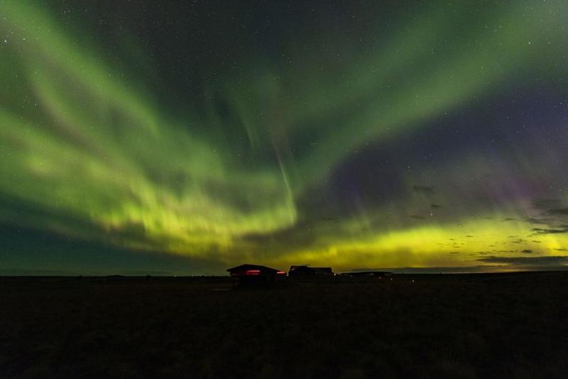 وتحدث ظاهرة الشفق القطبي نتيجة اصطدام جسيمات مشحونة من الشمس مع جسيمات في الغلاف الجوي للأرض، وأدت رياح شمسية قوية في حدوث هذا العرض الجميل.