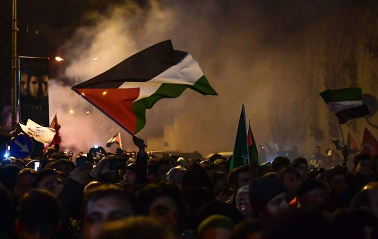 وأصر المتظاهرون الذين قُدرت أعدادهم بالآلاف على الاحتشاد أمام ساحة مسجد السلطان محمد الفاتح بمدينة إسطنبول رفضًا لـ «الاعتراف» الأميركي، مؤكدين أن القدس عاصمة فلسطين الأبدية، ومطالبين حكومتهم باتخاذ مواقف تناسب الفعل الغربي.