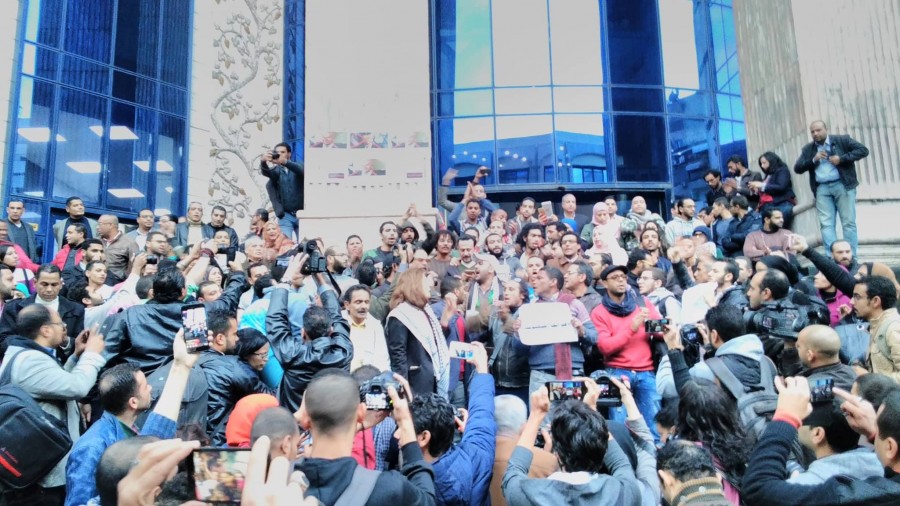 جاء هذا استجابة لدعوة أربعة من أعضاء مجلس النقابة، في بيان صحفي، أعضاء الجمعية العمومية إلى الاحتشاد في الخامسة مساء اليوم بمقر نقابتهم لتنظيم وقفة احتجاجية تنديدًا بقرار الرئيس الأميركي دونالد ترامب.