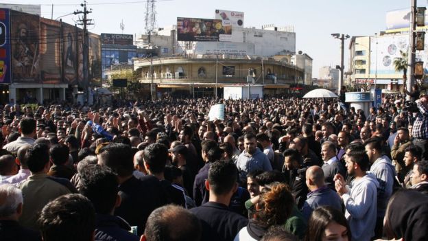واحتشد 3 آلاف متظاهر كردي على الأقل، في وقت سابق، في السليمانية احتجاجا على حكومة الإقليم بعد سنوات من التقشف وعدم دفع رواتب العاملين بالقطاع العام.