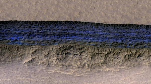 التقطت المركبة الفضائية «مارس ريكونيسانس أوربيتر»، التابعة لإدارة الطيران والفضاء الأميركية «ناسا»، صورًا أظهرت منحدرات حادة كشفت أنّ الجليد قد يتاح -بشكل أكبر مما كان متصورًا- للاستخدام مصدرًا للمياه؛ لدعم بعثات استكشاف بالروبوت أو بعثات استكشافية بشرية في المستقبل، أو ربما إقامة قاعدة دائمة على سطح المريخ.