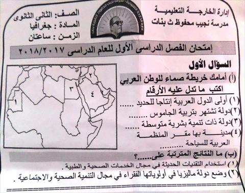 فوجئت طالبات الصف الثاني الثانوي، بمدرسة نجيب محفوظ الثانوية للبنات التابعة لإدارة الخارجة التعليمية في محافظة الوادي الجديد، بأن امتحان مادة الجغرافيا به خريطة صماء تضم حلايب وشلاتين، ولكن جاءت شلاتين خارج الحدود المصرية.