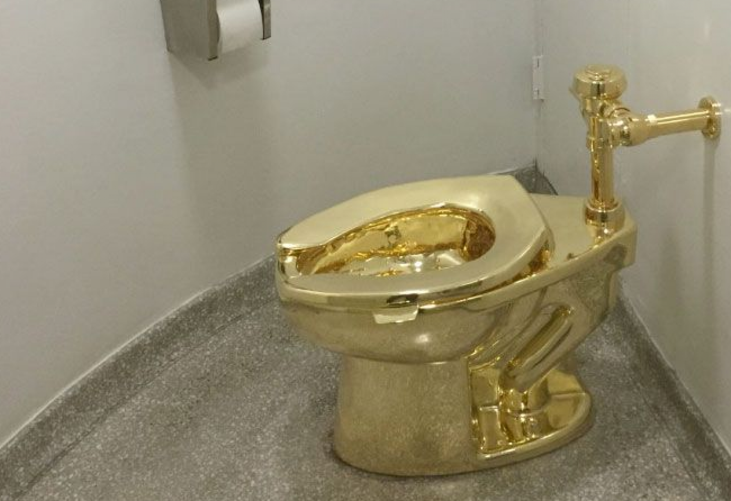 عرض متحف جوجنهايم في مدينة نيويورك الأميركية، مرحاضا مصنوعا من ذهب عيار 18 قيراطا على البيت الأبيض؛ ردا على طلب إدارة ترامب استعارة لوحة لفنسنت فان جوخ.