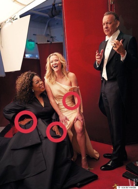 حيث عرض الغلاف صورة لمقدمة البرامج الأميركية الشهيرة «أوبرا»، ومواطنتها الممثلة «ريز ويذرسبون»، إلا أن الصورة أظهرت لـ«أوبرا» 3 أيدٍ، فيما ظهرت «ويذرسبن» بـ3 أرجل الأمر الذي أثار تهكم النجمتين على هذه الأخطاء التي وقعت فيها المجلة.