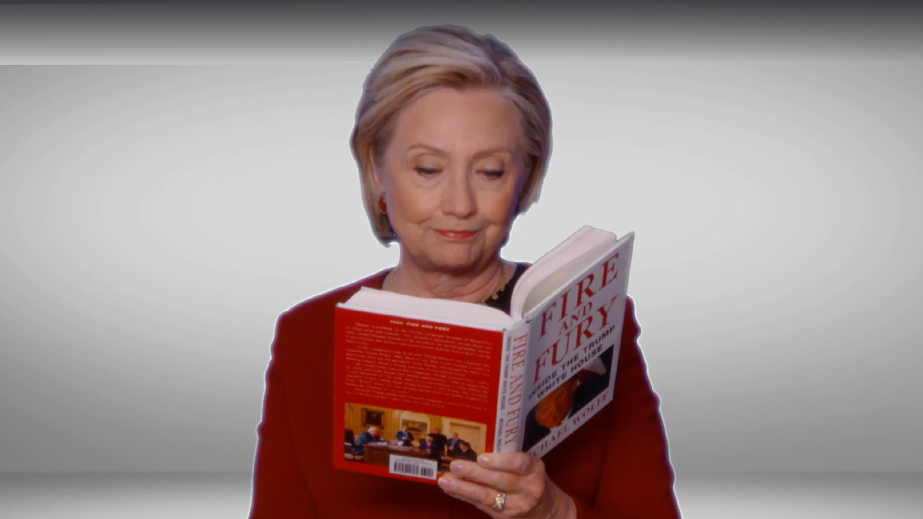 تفاجأ متابعو حفل جوائز جرامي الموسيقية، بظهور المرشحة الديمقراطية الأميركية السابقة هيلاري كلينتون على شاشة وهي تقرأ مقتطفا من الكتاب المثير للجدل «النار والغضب».