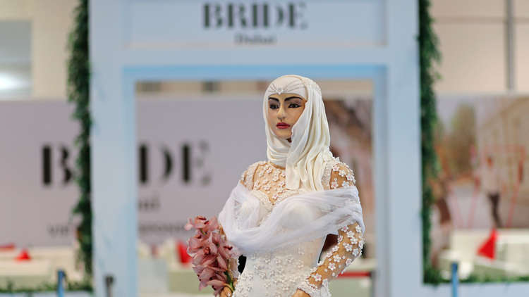 تم عرض الكعكة الضخمة المصنوعة على شكل فتاة محجبة في Dubai Bride Show، وينتظر أن يتم استخدامها في حفل زفاف بدبي.