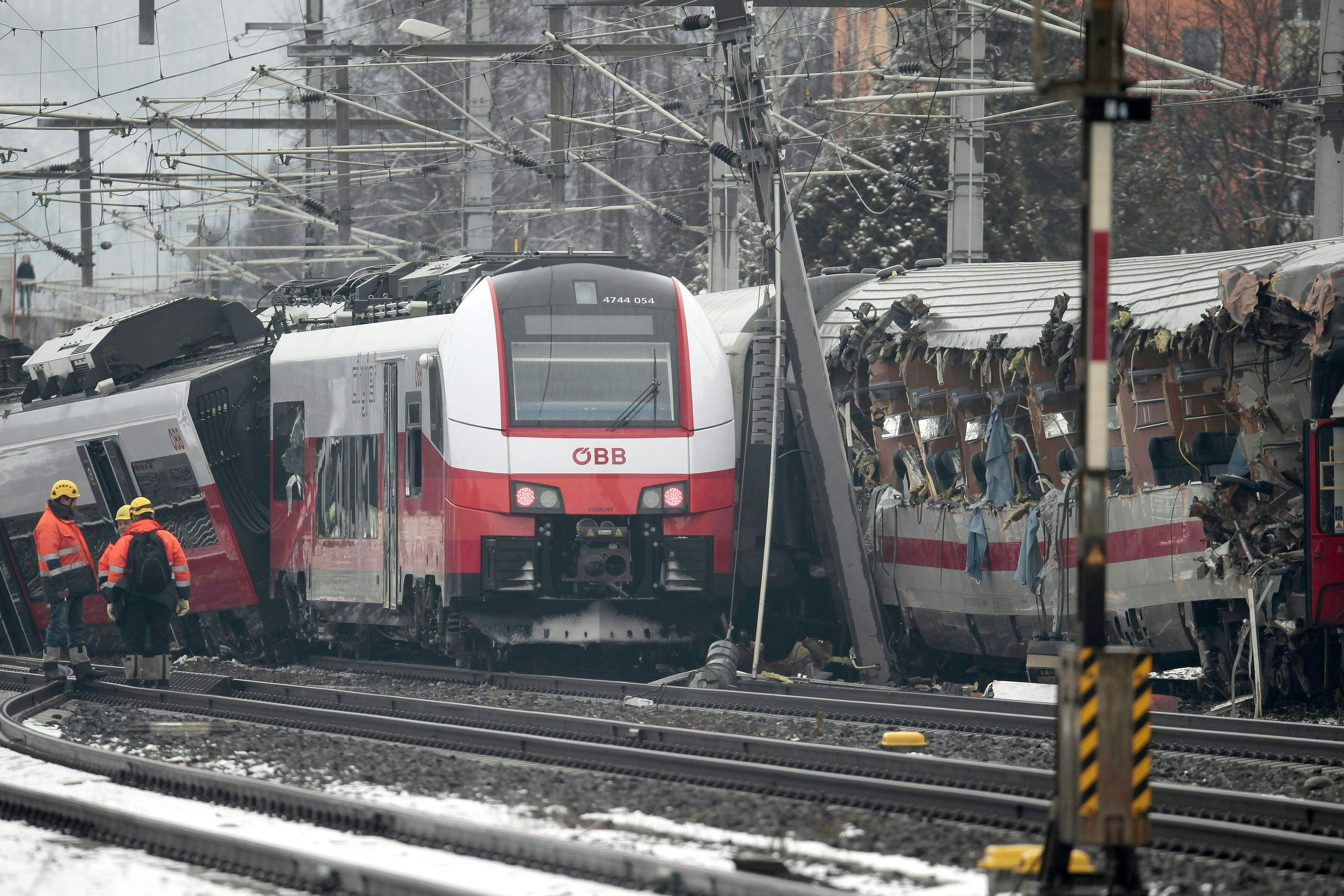 وقالت هيئة السكك الحديدية النمساويةن إن قطارًا اصطدم بقطار آخر إقليمى ما تسبب في خروج عدة عربات عن مسارها.